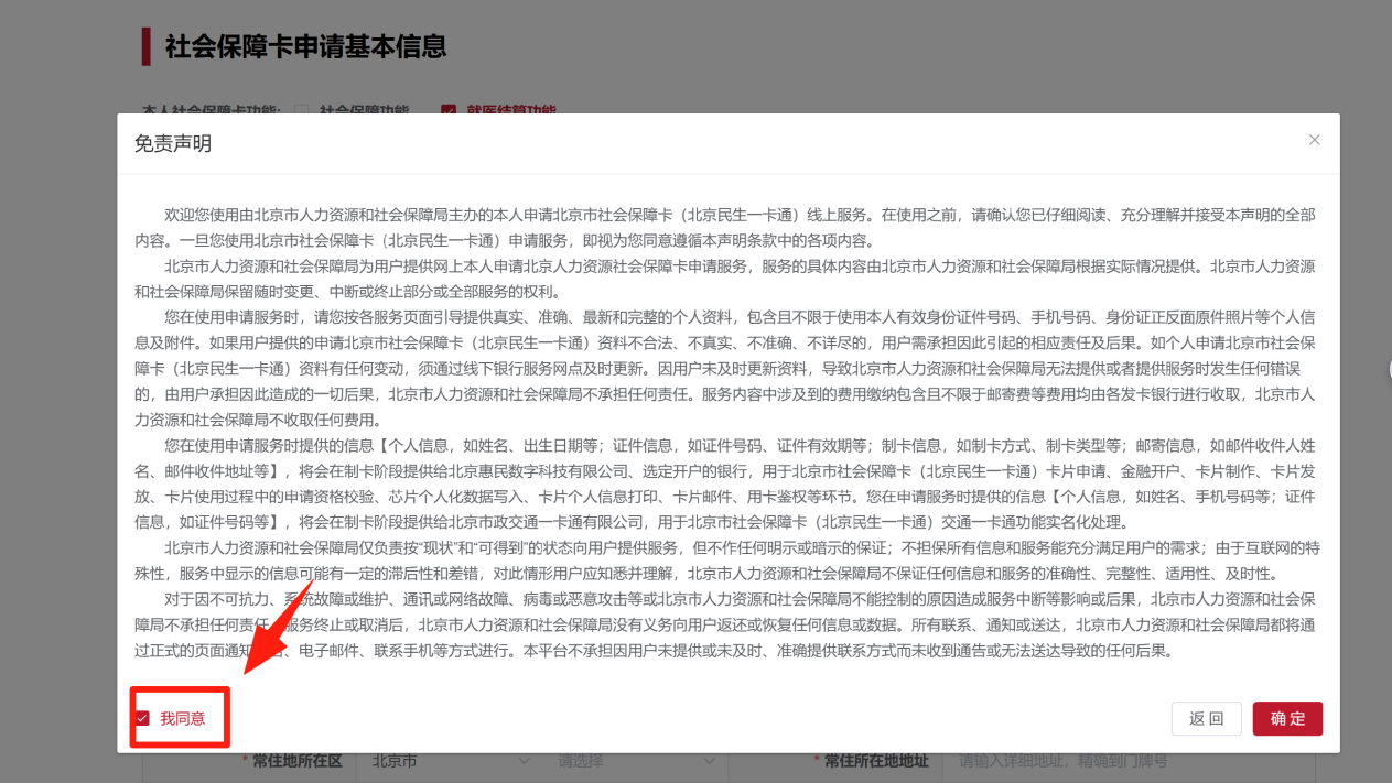 第六步:閱讀免責(zé)聲明后,勾選“我同意”并點(diǎn)擊“確定”按鈕。