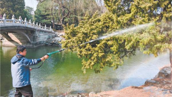 頤和園園林科技科主任趙曉燕介紹,目前已在重點(diǎn)區(qū)域每日開(kāi)展三次噴水洗樹(shù)降塵及地面濕化清掃,全力應(yīng)對(duì)花粉爆發(fā)高峰期,最大限度降低空氣中花粉濃度。