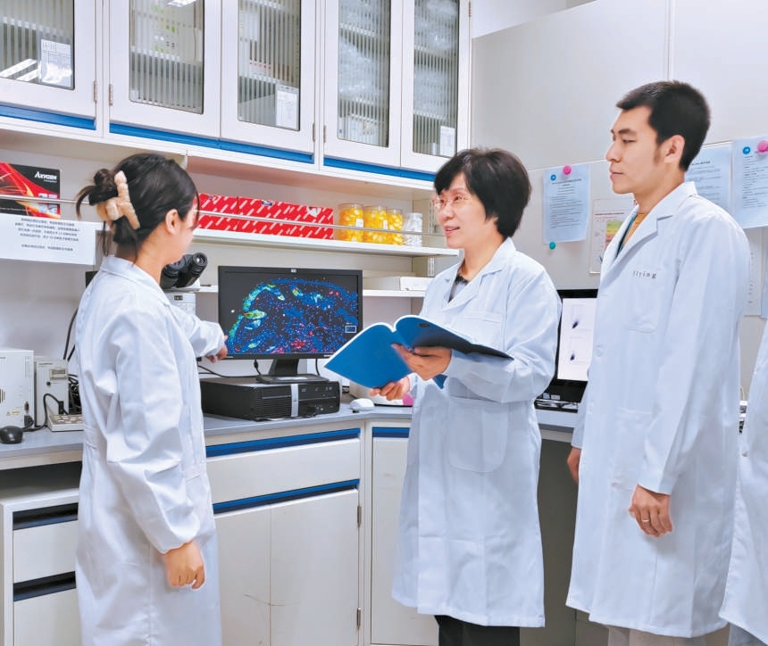 北工大教授馬雪梅(中)和學生們在一起研討項目。