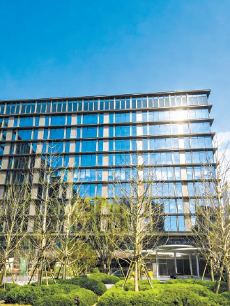 中海金融中心的1號(hào)寫字樓采用大面積的光伏玻璃幕墻。