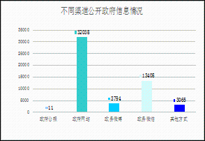 通過(guò)不同渠道和方式公開(kāi)政府信息的情況,包括政府公報(bào)公開(kāi)政府信息11條;政府網(wǎng)站公開(kāi)政府信息32038條;政務(wù)微博公開(kāi)政府信息3794條;政務(wù)微信公開(kāi)政府信息13405條;其他方式公開(kāi)政府信息3065條。