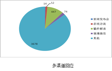 共回應(yīng)公眾關(guān)注熱點(diǎn)280件。包括,參加或舉辦新聞發(fā)布會(huì)14次(主要負(fù)責(zé)同志參加新聞發(fā)布會(huì)11次)。政府網(wǎng)站在線訪談52次。政策解讀稿件發(fā)布447篇;微博微信回應(yīng)事件74件;其他方式回應(yīng)事件3678件。