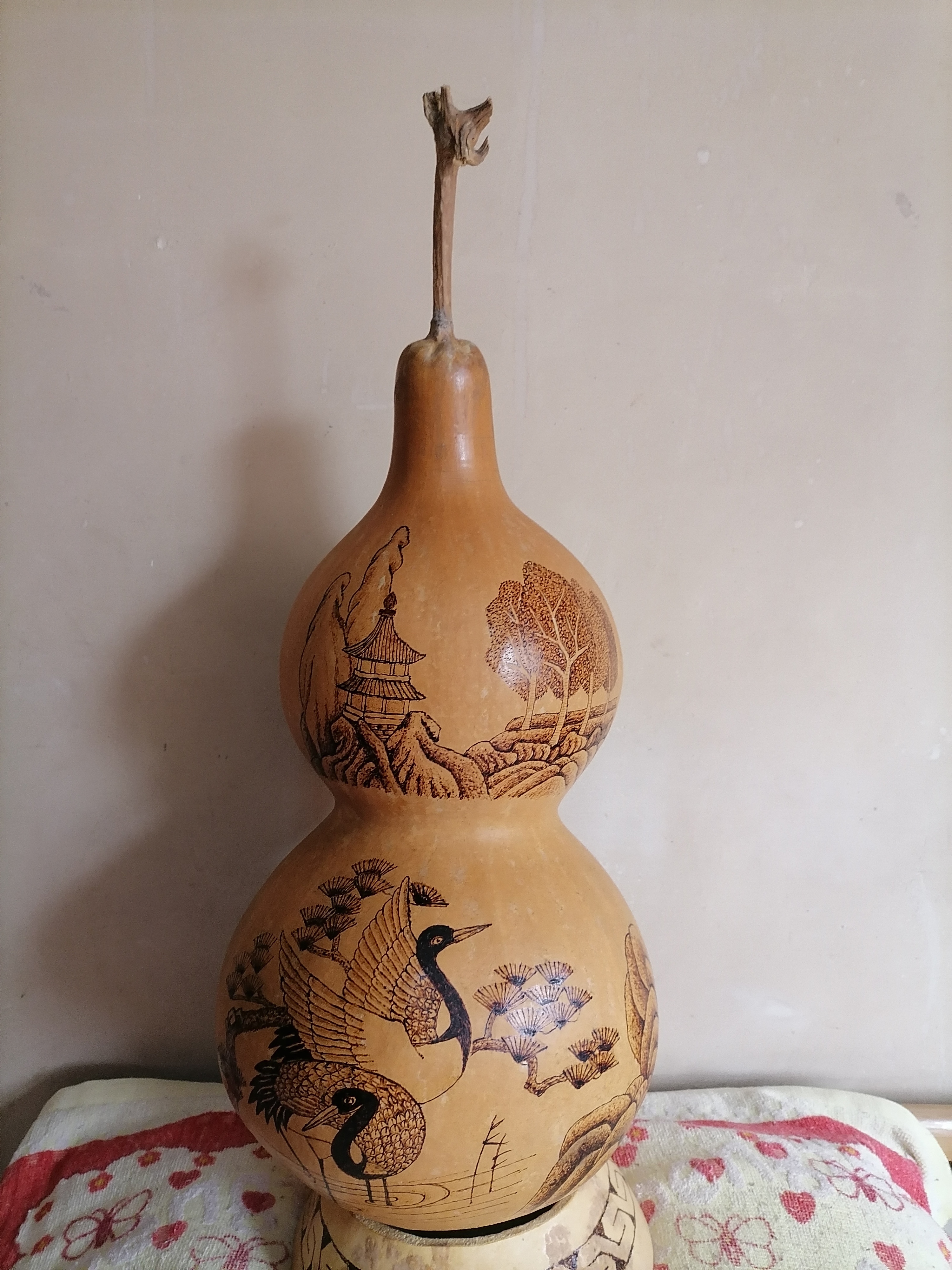 烙畫葫蘆,又稱燙畫葫蘆,火筆畫葫蘆,是一種寓意福祿平安,深受百姓喜愛的傳統(tǒng)工藝美術(shù)品。