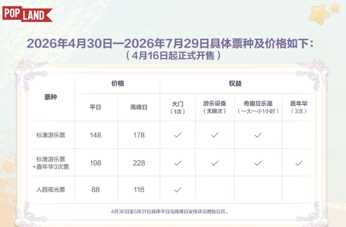 根據(jù)公告,4月30日至7月29日,標(biāo)準(zhǔn)樂園游平日價(jià)格為148元/人,高峰日價(jià)格為178元/人。對(duì)比來看,這一價(jià)格已接近2023年9月樂園開業(yè)時(shí)的定價(jià)。彼時(shí),平日標(biāo)準(zhǔn)大門票為150元,高峰日標(biāo)準(zhǔn)門票為180元。