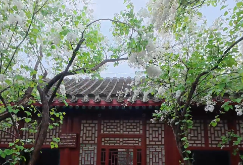 魯迅舊居屋檐上綴滿細(xì)密的白色丁香花,吸引眾多參觀者放慢腳步,定格春色。這兩株白丁香是魯迅1925年4月5日親手所植。百年時(shí)光流轉(zhuǎn),幼株已長(zhǎng)成蒼勁老樹。