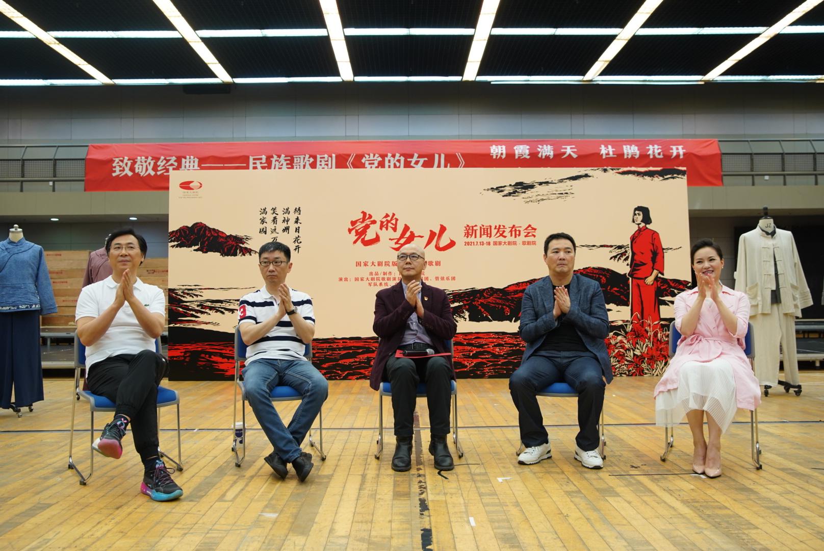 2021年7月5日下午,該版《黨的女兒》在國(guó)家大劇院排練廳舉辦了新聞發(fā)布會(huì)。國(guó)家大劇院副院長(zhǎng)趙鐵春與指揮李心草、導(dǎo)演汪俊、雷佳、廖昌永等主創(chuàng)主演悉數(shù)亮相,講述分享了該劇的創(chuàng)作初衷和劇目亮點(diǎn)。