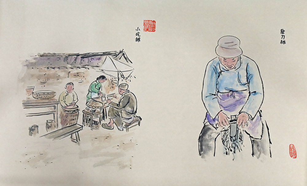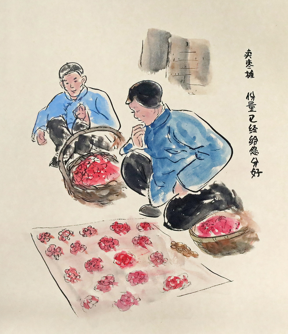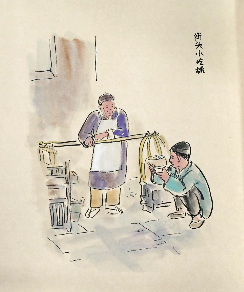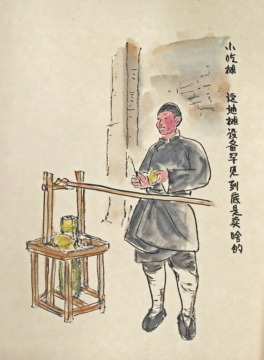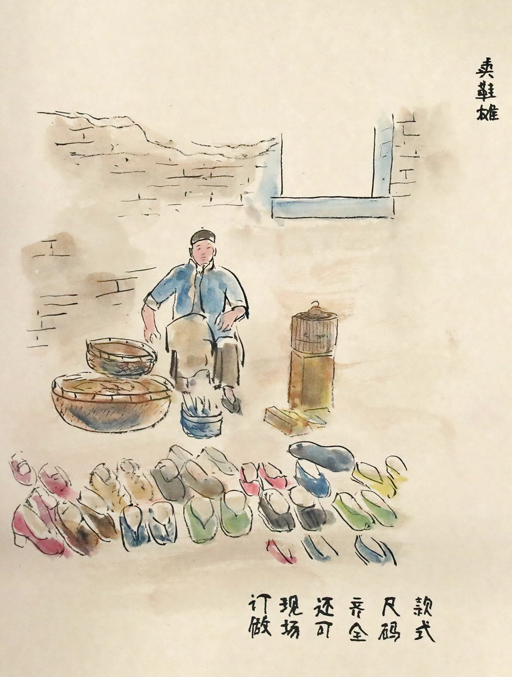 歷史,不止記錄轟轟烈烈的故事,也記錄著不斷消失的記憶。以傳統(tǒng)國畫的方式去追憶老北京那些歲月時(shí)光里的商攤。(作者:陳惠展)