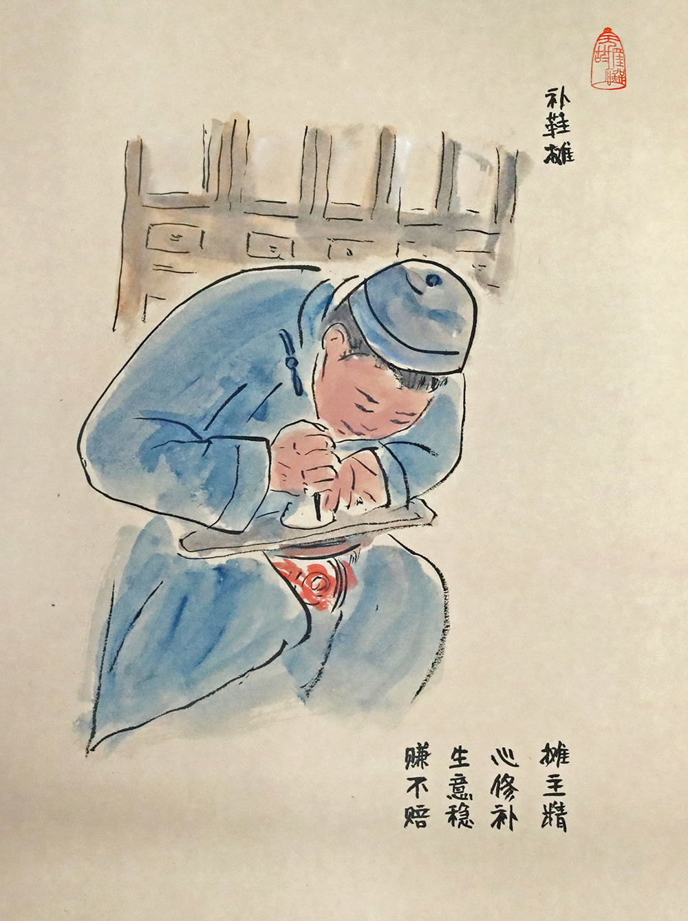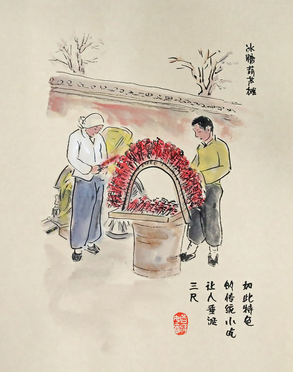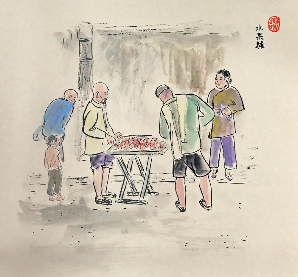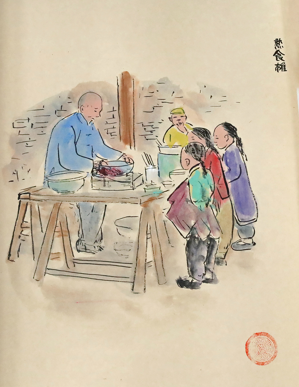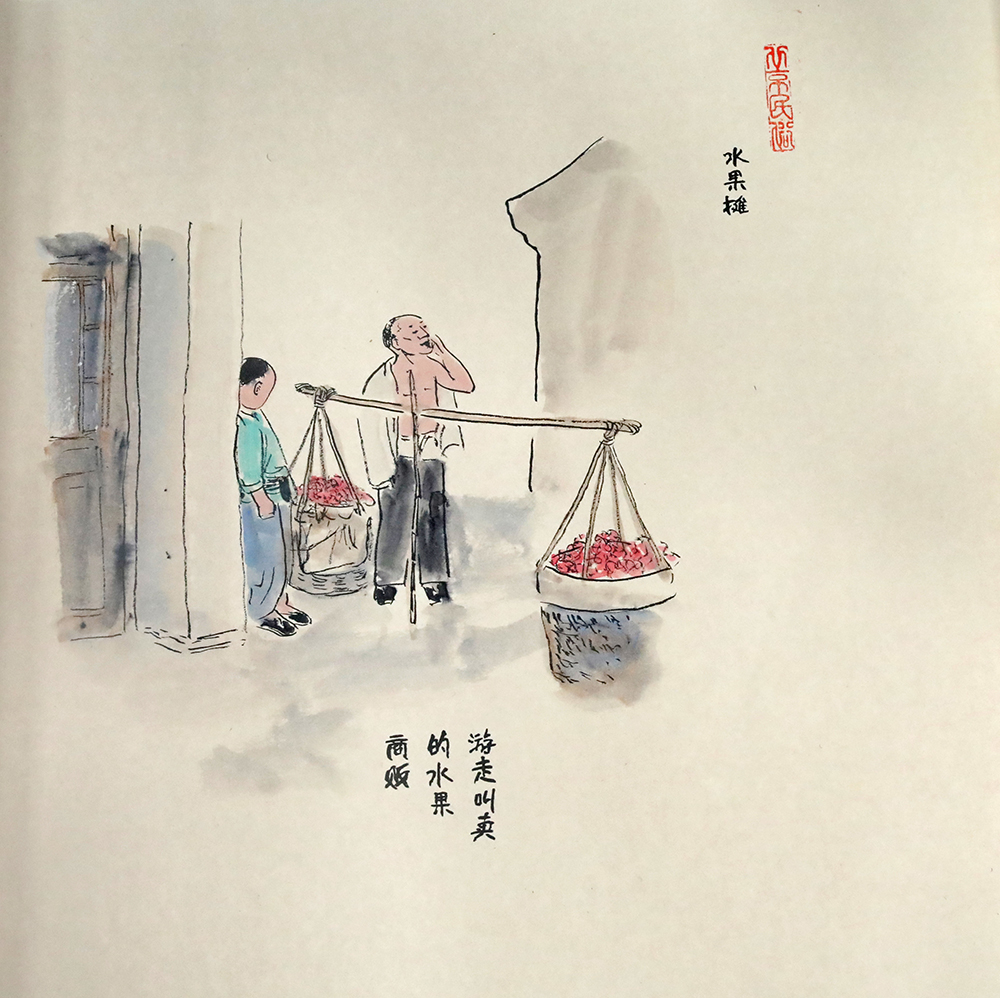 歷史,不止記錄轟轟烈烈的故事,也記錄著不斷消失的記憶。以傳統(tǒng)國畫的方式去追憶老北京那些歲月時(shí)光里的商攤。(作者:陳惠展)