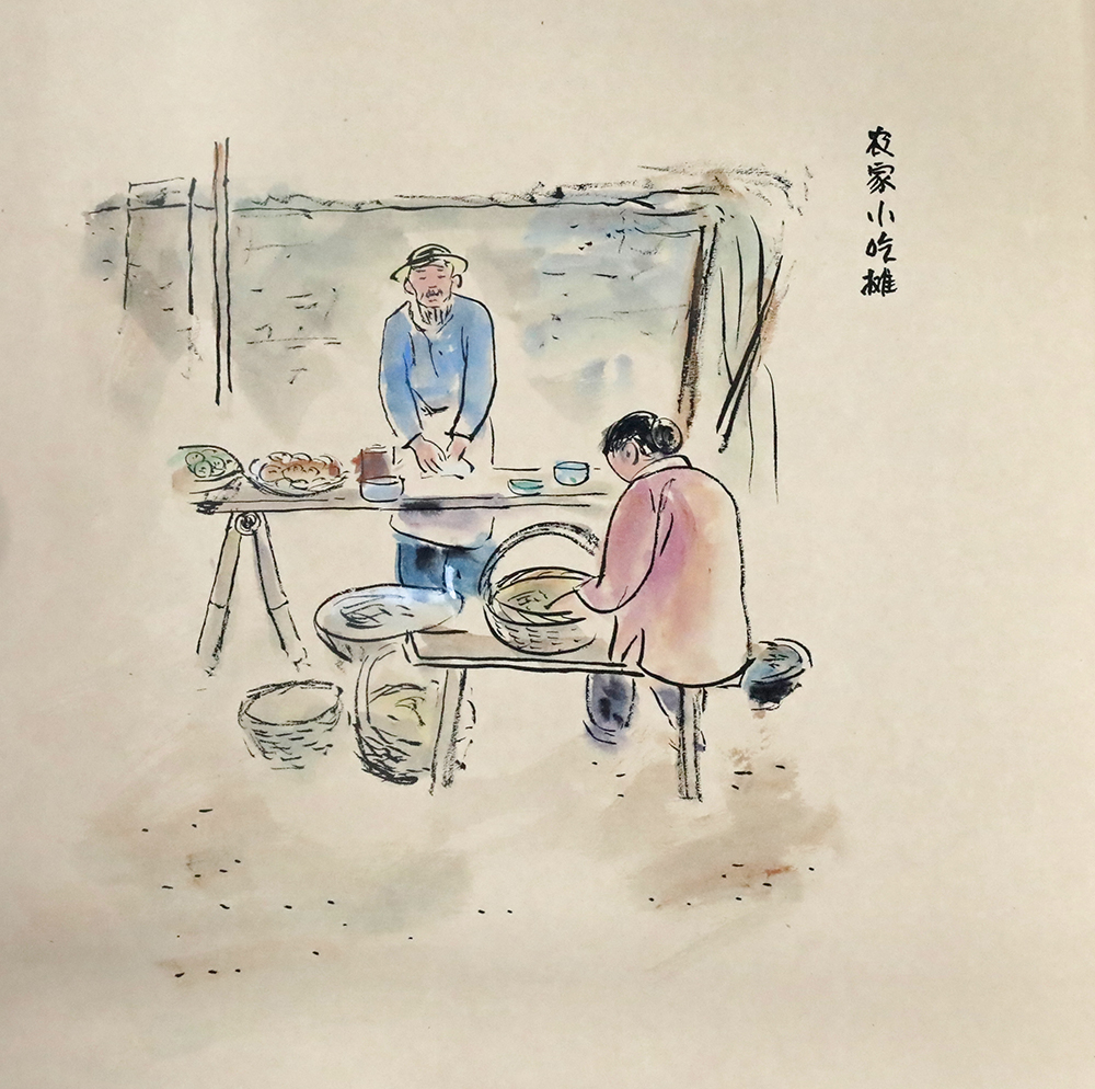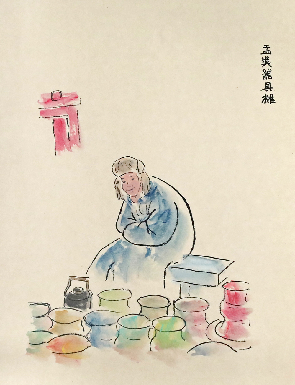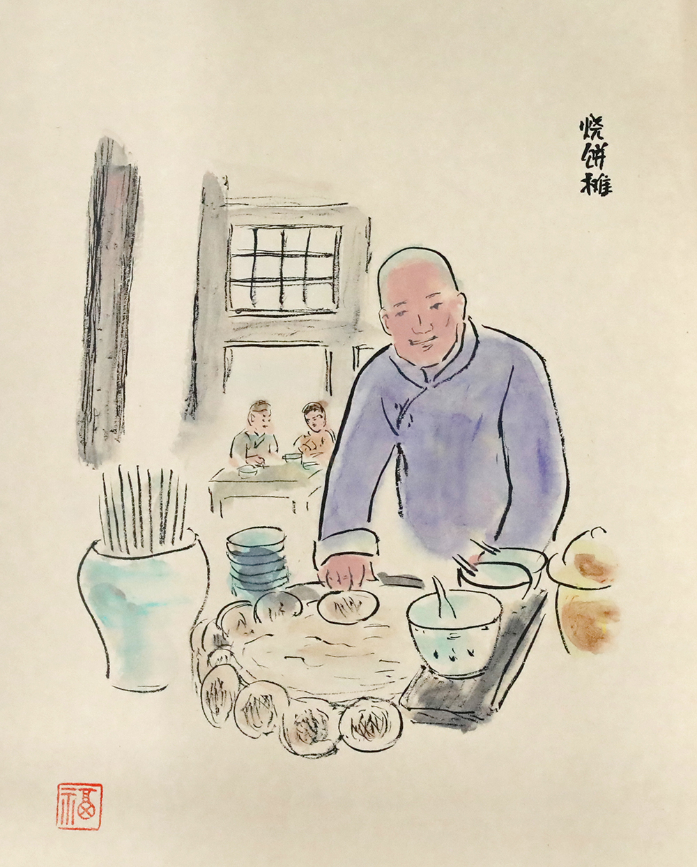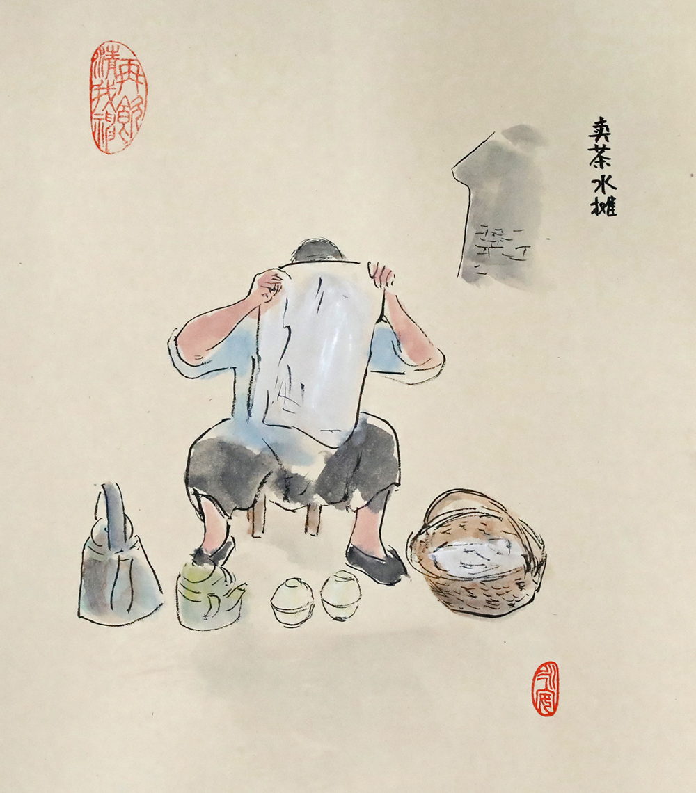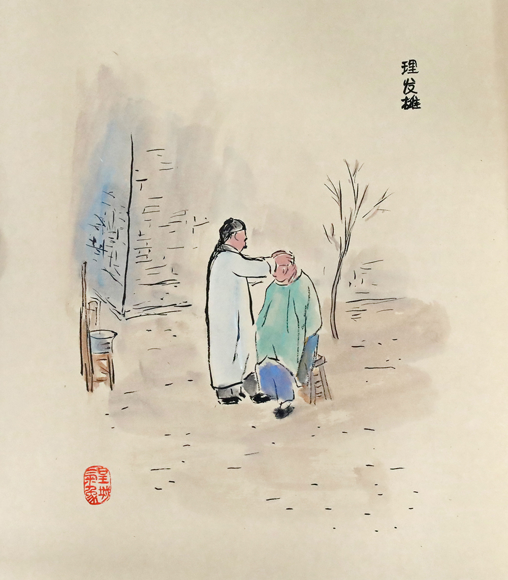 歷史,不止記錄轟轟烈烈的故事,也記錄著不斷消失的記憶。以傳統(tǒng)國畫的方式去追憶老北京那些歲月時(shí)光里的商攤。(作者:陳惠展)