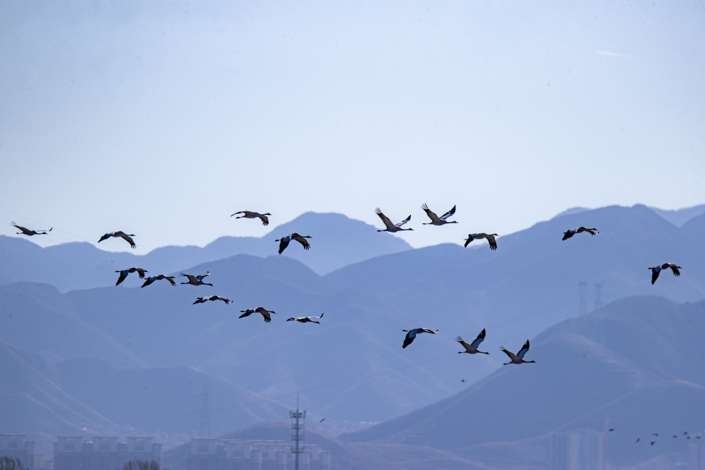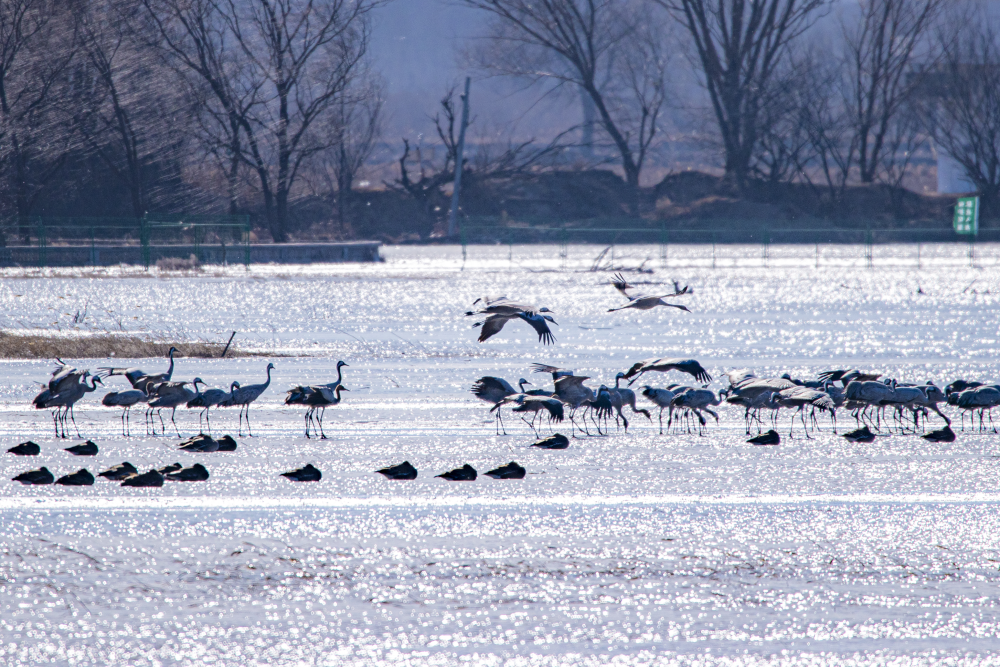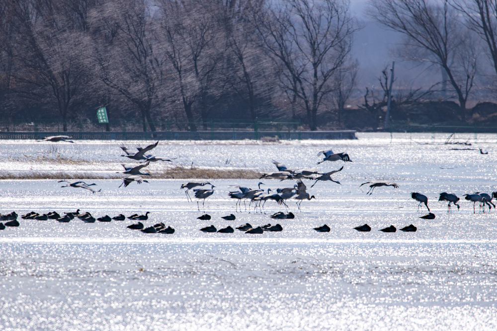 日前,野鴨湖畔迎來近千只遷徙途中的豆雁,它們身披灰褐色羽毛,宛如湖面上躍動(dòng)的音符,或低首覓食,或振翅嬉戲,在尚未完全冰封的水面上繪出一幅生動(dòng)的冬日生態(tài)畫卷。(李曉鵬/攝)