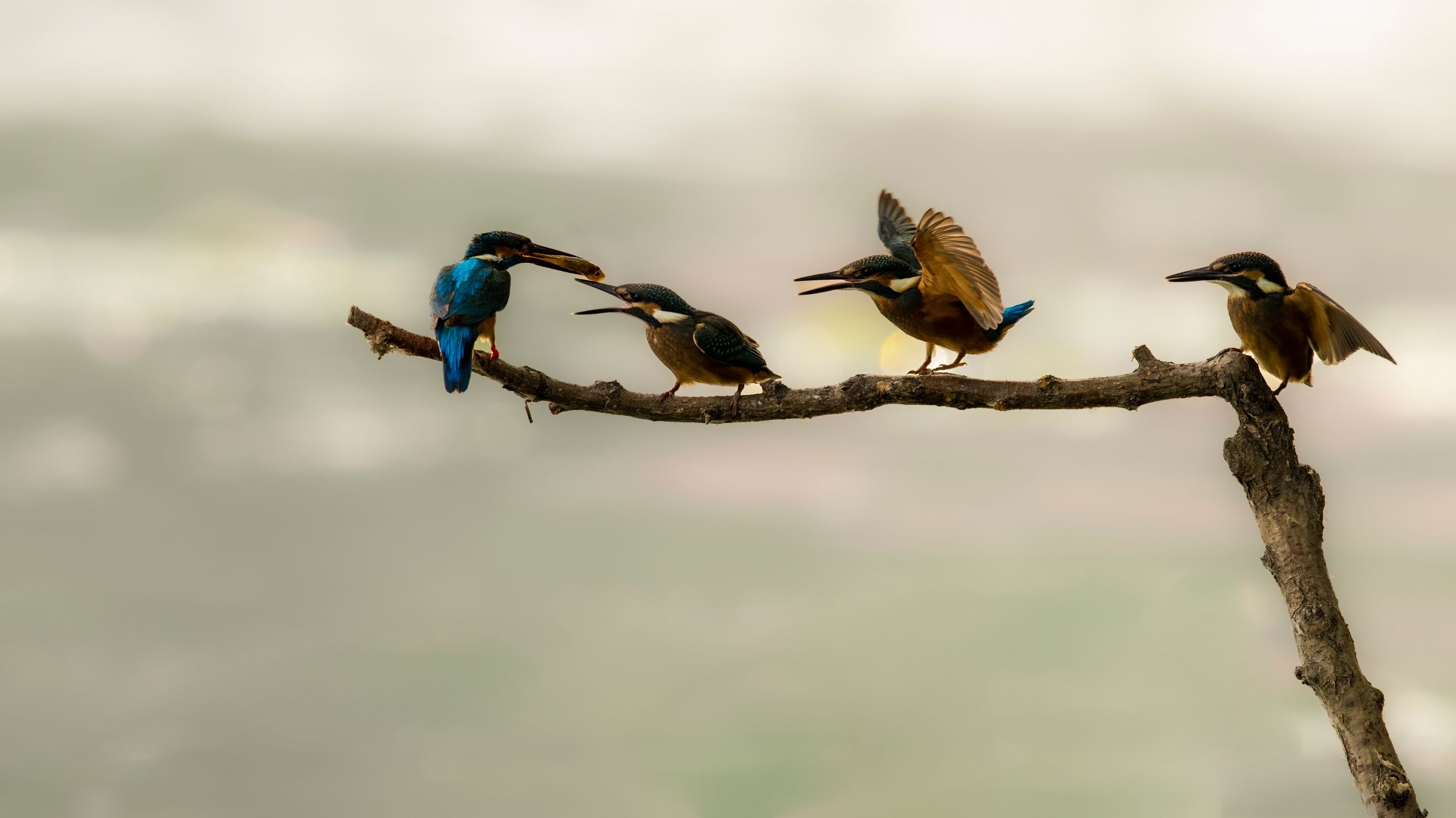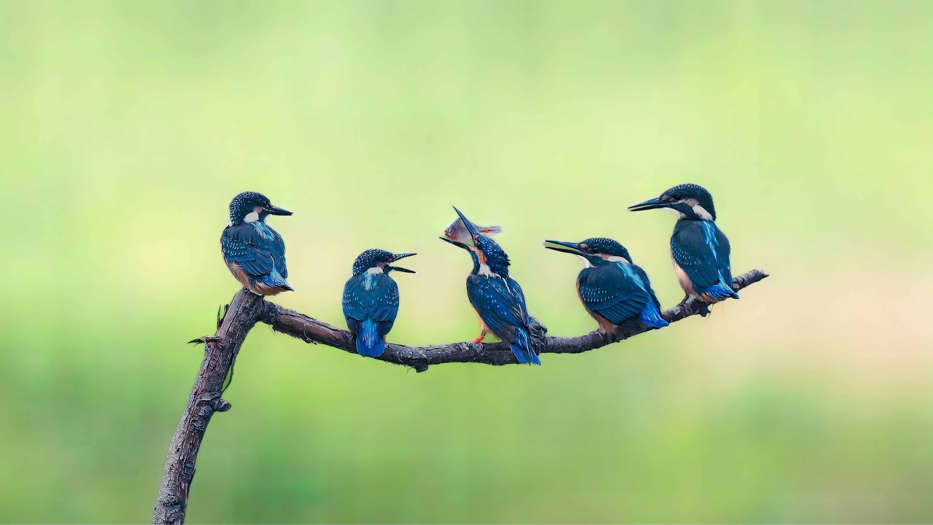 《示范》小清河上的翠鳥爸爸給剛出飛的四只小翠鳥示范食魚。(攝影:王京華 )
