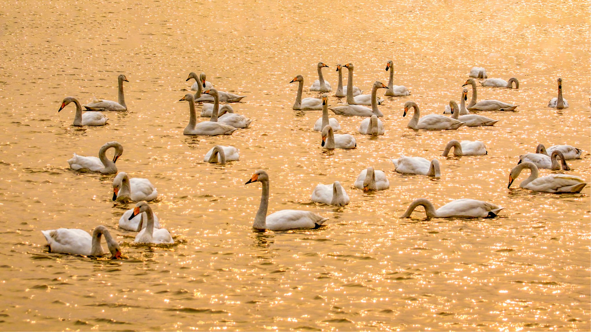 《晚餐時(shí)間》拍攝于南海子公園,光影的流轉(zhuǎn)中天鵝覓食, 或四處尋覓,或鉆入水中,一幅美好的畫面。 (攝影:劉景波)