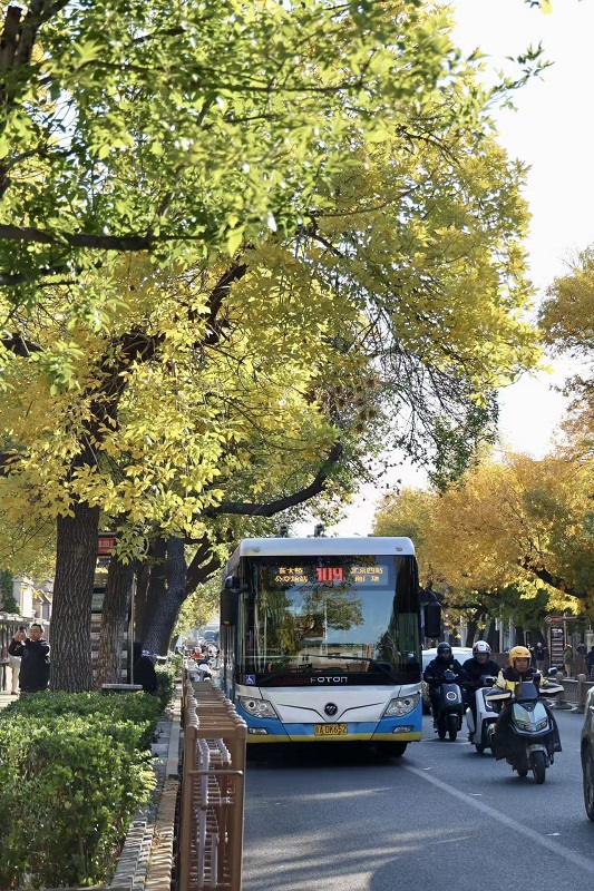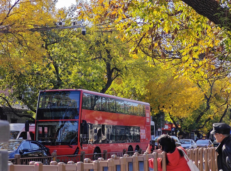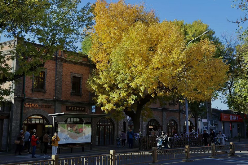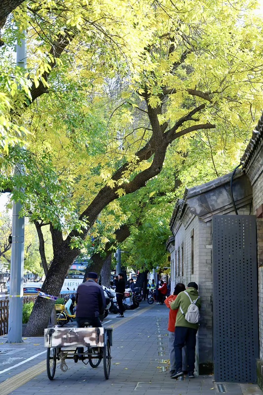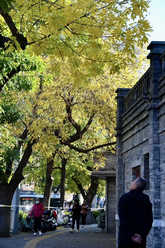 秋風(fēng)起,秋意濃,北京五四大街迎來了一年中最具詩意的時節(jié)。每年這個季節(jié),五四大街道路兩旁的白蠟樹仿佛被大自然的妙筆點染,由翠綠漸漸換上了金黃的華服,與街邊紅磚灰墻的歷史建筑相互映襯,組成了一幅韻味十足的秋日畫卷。一群群年輕人手持相機,穿梭在白蠟樹下,用鏡頭定格這秋天的圖畫。來往的游人也紛紛停下腳步,沉浸在老舍筆下的北平之秋畫意里。(攝影:喬健)