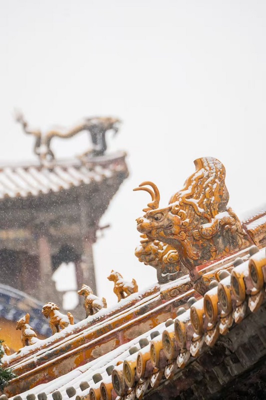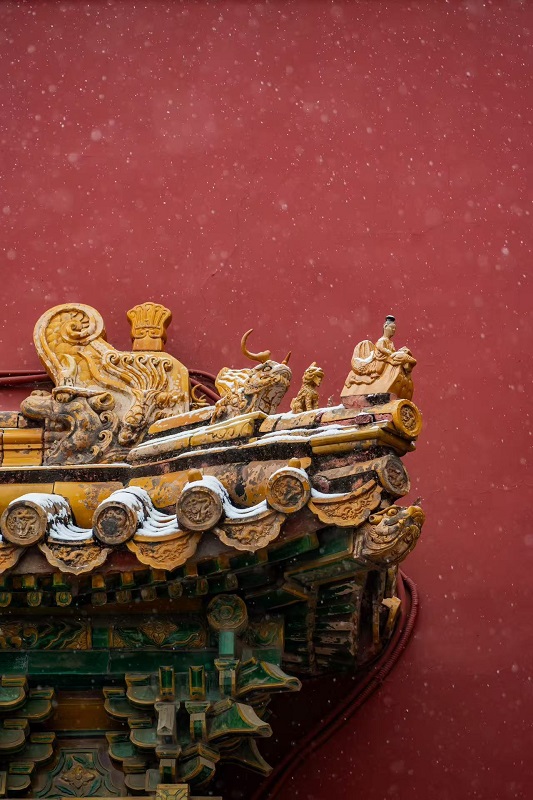 雪后的故宮,褪去喧囂,以素白之姿靜立天地之間。紅墻金瓦覆雪如蓋,飛檐斗拱凝霜似玉,六百年的皇家氣象在冰雪中愈發(fā)莊重深沉。當(dāng)鏡頭定格,記錄的不僅是雪景之美,還是故宮的冬日美學(xué)。(攝影:沈欣)
