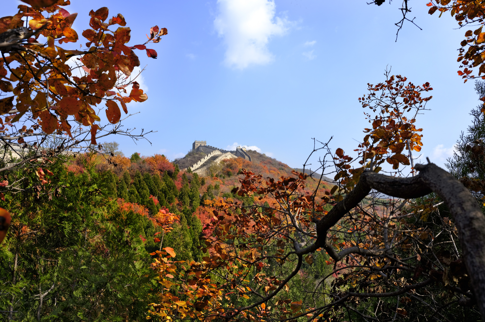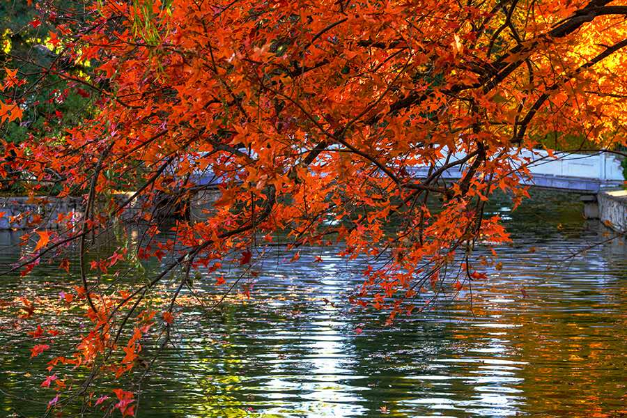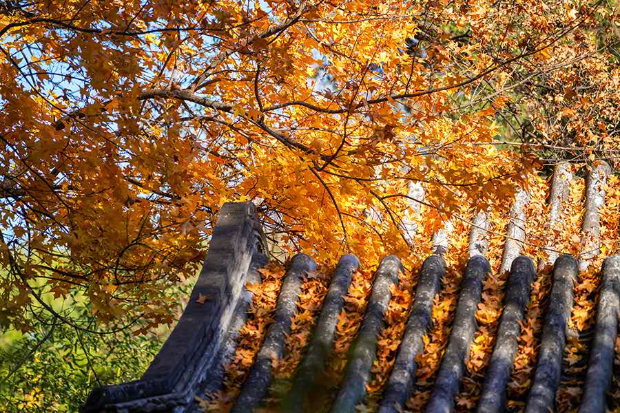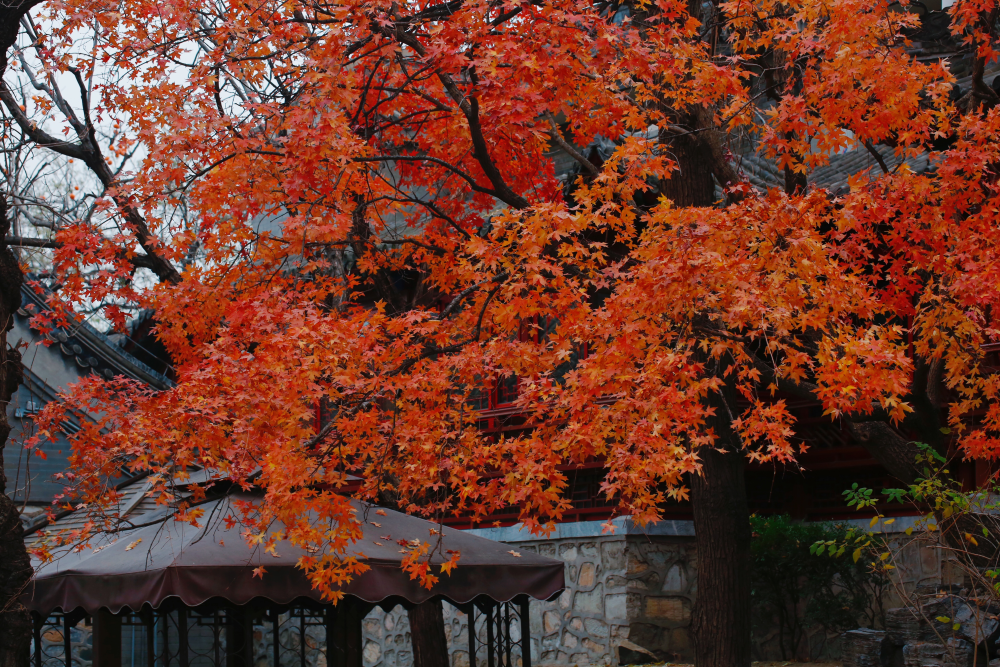 “秋天一定要住北平。天堂是什么樣子,我不曉得,但是從我的生活經(jīng)驗去判斷,北平之秋便是天堂?!崩仙嵩鴮懴逻@樣的文字。北京的秋天雖然短暫卻足夠驚艷,天氣不冷不熱,晝夜劃分平均,紅黃兩色與青瓦灰墻相稱,美不勝收。(攝影:周廣)