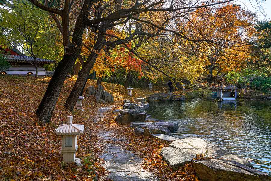 “秋天一定要住北平。天堂是什么樣子,我不曉得,但是從我的生活經(jīng)驗去判斷,北平之秋便是天堂?!崩仙嵩鴮懴逻@樣的文字。北京的秋天雖然短暫卻足夠驚艷,天氣不冷不熱,晝夜劃分平均,紅黃兩色與青瓦灰墻相稱,美不勝收。(攝影:楊建國)