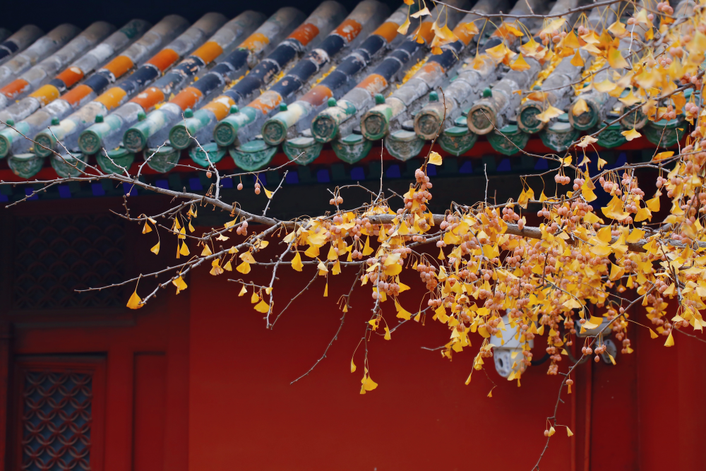 “秋天一定要住北平。天堂是什么樣子,我不曉得,但是從我的生活經(jīng)驗去判斷,北平之秋便是天堂。”老舍曾寫下這樣的文字。北京的秋天雖然短暫卻足夠驚艷,天氣不冷不熱,晝夜劃分平均,紅黃兩色與青瓦灰墻相稱,美不勝收。(攝影:于連祥)