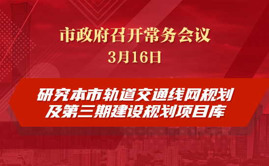 市政府常務(wù)會(huì)議:研究本市軌道交通線網(wǎng)規(guī)劃及第三期建設(shè)規(guī)劃項(xiàng)目庫(kù)
