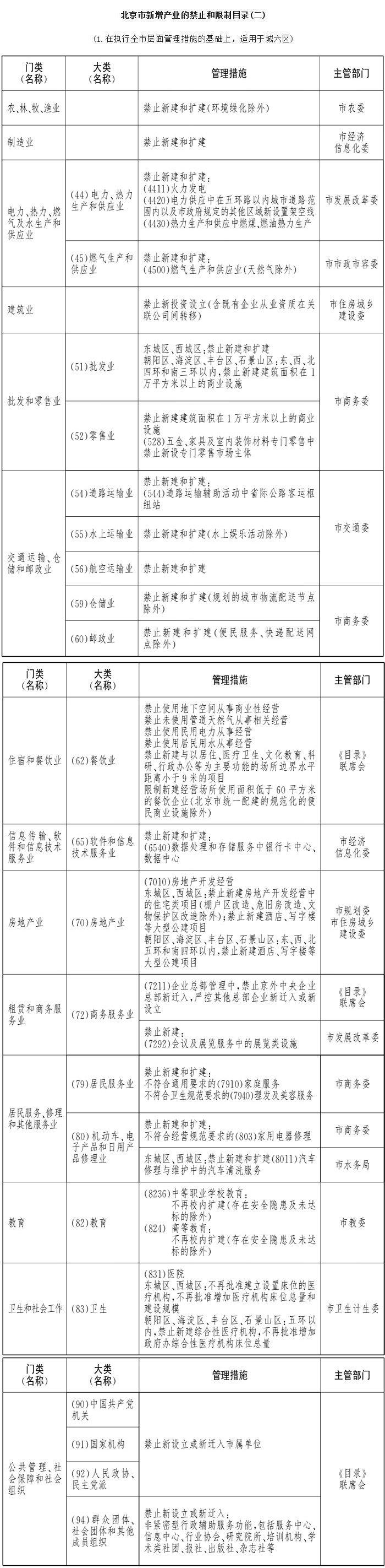 - 附件2:北京市新增產(chǎn)業(yè)的禁止和限制目錄(二)(1、在執(zhí)行全市層面管理措施的基礎(chǔ)上,適用于城六區(qū))